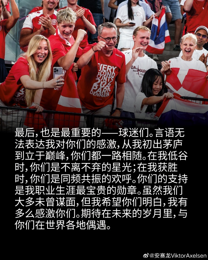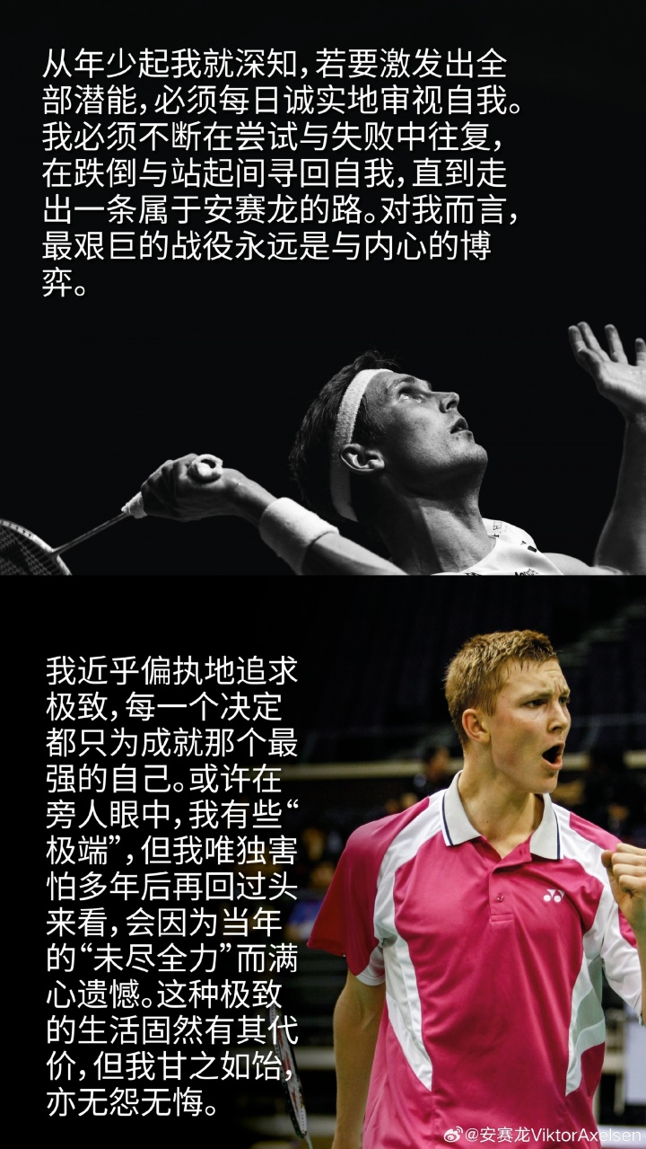 回望过去,我满心自豪,更深怀感激。我实现了最初的梦想,甚至收获了超越预期的成就。我有幸在最高规格的赛场,与最优秀的对手博弈,并摘取了每一位球员都梦寐以求的至高荣誉。更重要的是,羽毛球教会了我自律、牺牲、坚韧与自我重塑,其意义早已超越了胜负本身。