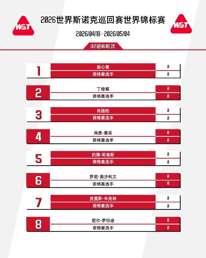 4月15日消息世界斯诺克巡回赛官方消息,斯诺克世锦赛抽签将于明天15:45分举行,16位种子选手将与16位资格赛晋级选手随机对阵。签表方面,赵心童和丁俊晖同处半区。若两人首轮都顺利取胜,两人将在1/8决赛相遇。其他中国种子选手方面,肖国栋...发表于:2026-04-15 -